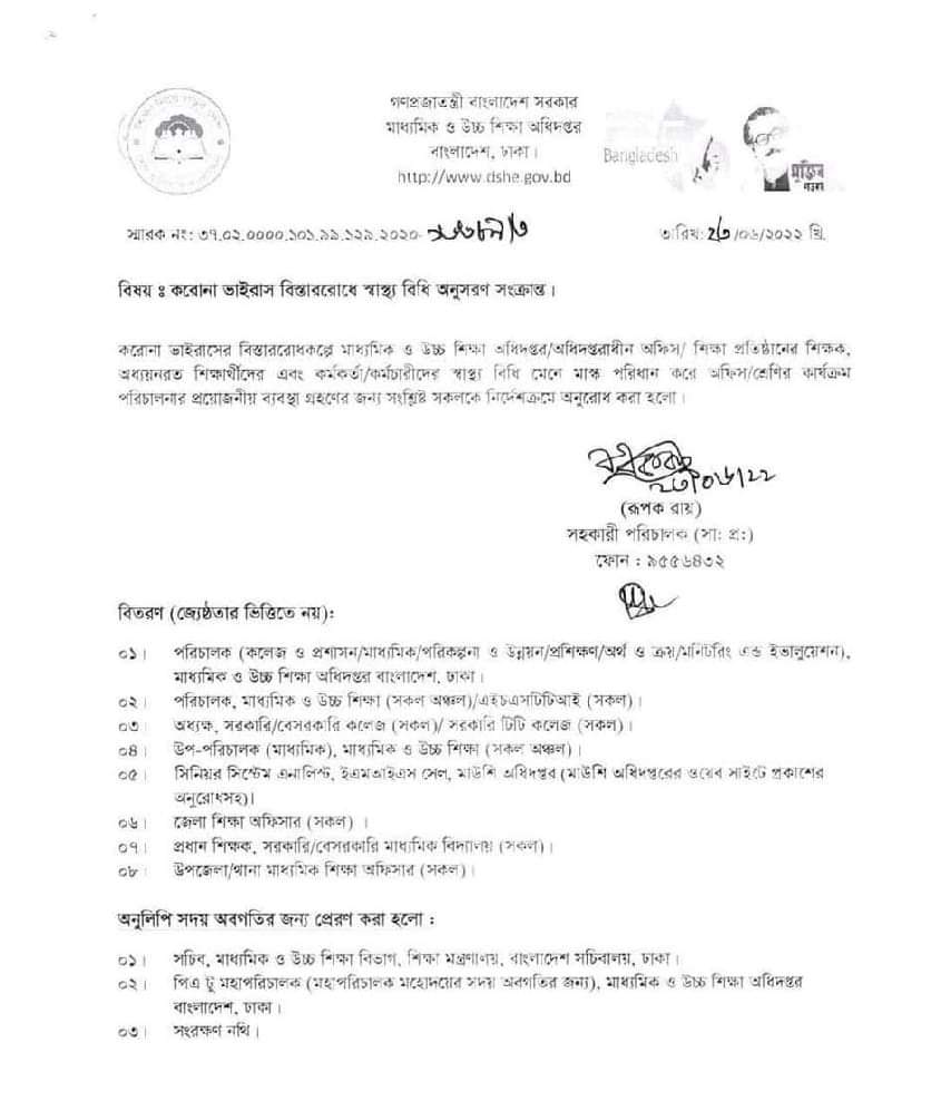 করোনা ভাইরাস বিস্তাররোধে স্বাস্থ্য বিধি অনুসরণ সংক্রান্ত।