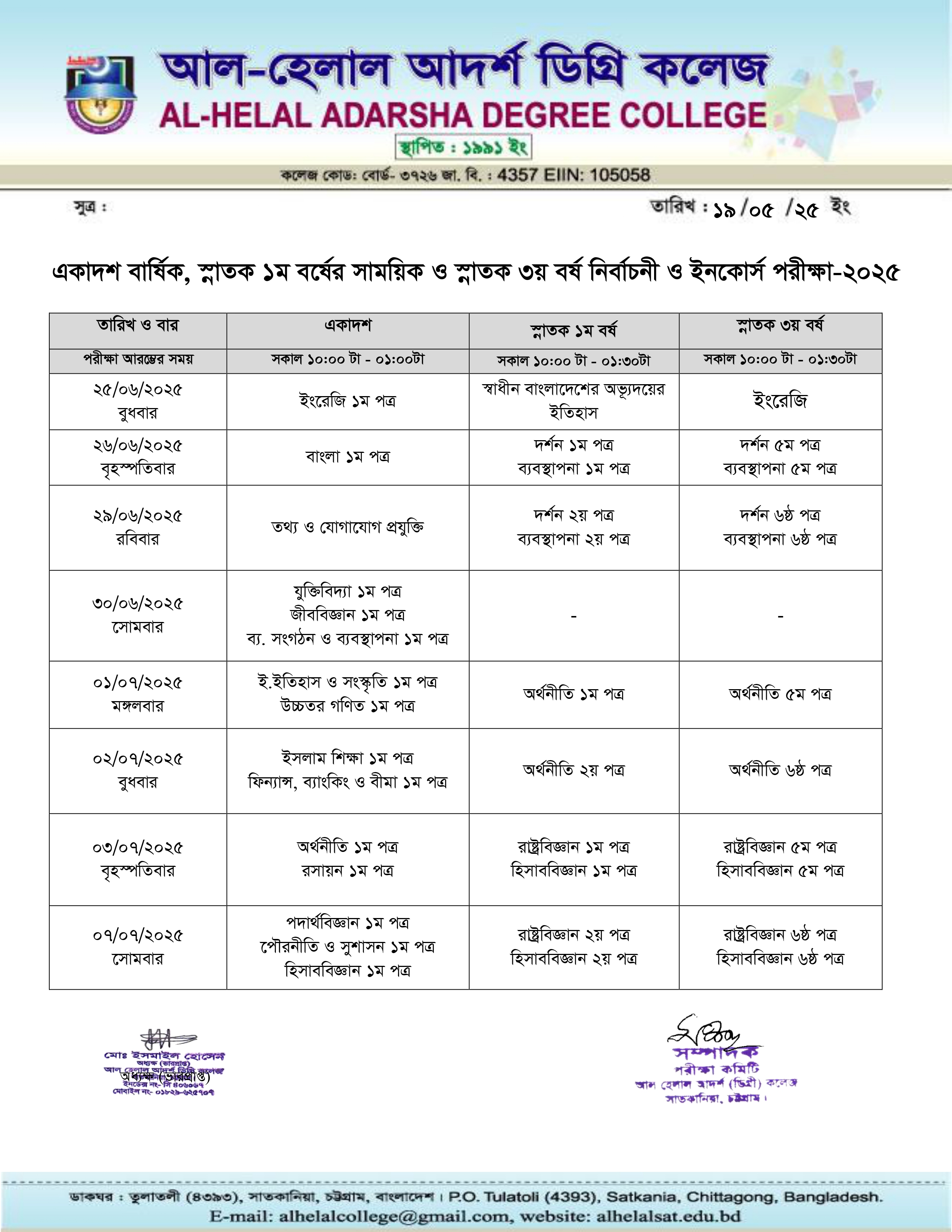 একাদশ বার্ষিক, স্নাতক ১ম বর্ষের সাময়িক এবং স্নাতক ৩য় বর্ষ নির্বাচনী ও ইনকোর্স পরীক্ষা ২০২৫ এর রুটিন প্রকাশ.....